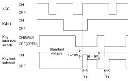3. Key solenoid output OFF -> ON operation, 0.9sec ~ 1.5sec for the 7 - 10V and the behavior, then the voltage 6 - 9V to maintain.