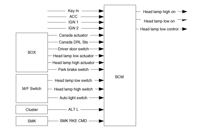 Head Lamp High input and Head Lamp Passing input by M/F is Head Lamp High switch processing for single input same MULTI-FUNCTION WIRING DESCRIPTION as Head Lamp High switch only input.