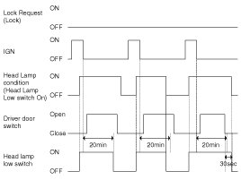 After user generates the call of head lamp low light(Head Lamp Low switch On), if switch off ignition(IGN Off and START Off), and then keep Head Lamp Low Output On (Head Lamp Low ON)state during 20min.