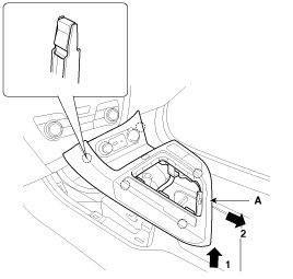 5. Using a screwdriver or remover, remove the floor console extension cover (A).
