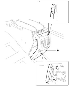 2. After loosening the mounting screws, then remove the rear console cover (A).