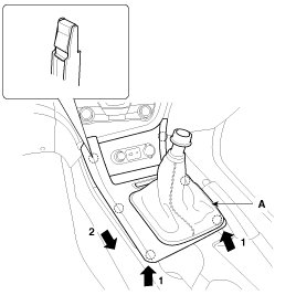 2. Using a screwdriver or remover, remove the floor console upper cover (A).