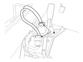 7. After loosening the mounting screws and bolts, then remove the floor console assembly (A).
