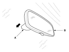 1. Push the inside rear view mirror base (A) down to remove the inside rear view mirror assembly (B).