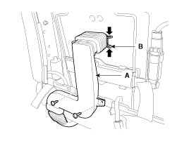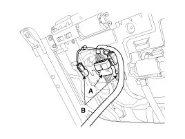 6. Push the hooks (B), loosen the air ventilation seat duct (A) mounting screws.