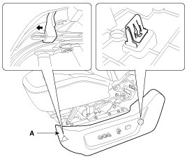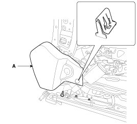 2. Using a screwdriver or remover, remove the front seat outer shield cover (A).