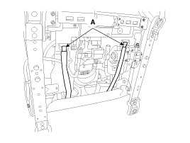 2. After loosening the seat assembly mounting bolts, remove the seat assembly (A).