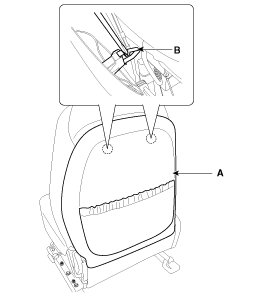 10. After removing the hog-ring clips (B) on the front of seat back and remove the seat back cover (A).