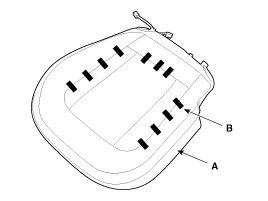 7. After removing the hog-ring clips (B) on the front of seat cushion and remove the seat cushion cover (A).