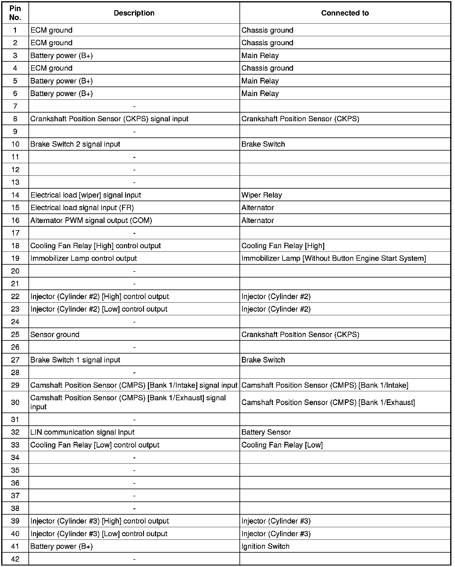 ECM Terminal And Input/Output signal