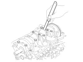- If any of the bearing cap bolts in broken or deformed, replace it.