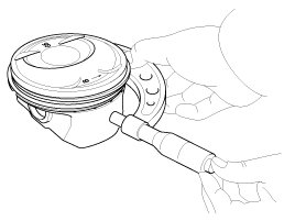 Set the snap ring so that it contacts completely with the groove of the piston pin hole.