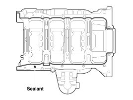 12. Apply liquid gasket to the mating surface of cylinder block and ladder frame.