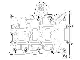 - The main bearing cap bolts are tightened in 3 progressive steps.