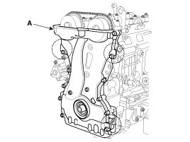 29. Remove the timing chain cover (A) by gently prying the portions between the cylinder head and cylinder block.