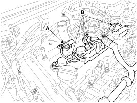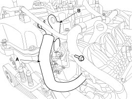 25. Connect the fuel hose (A) and PCSV (Purge control solenoid valve) hose (B).