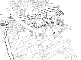 24. Connect PCSV (Purge control solenoid valve) connector (A) and tighten the vacuum pipe assembly mounting bolts and nut.