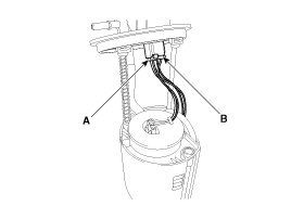 2. Disconnect the electric pump wiring connector (A) and the fuel sender connector (B).