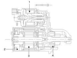 The contacts close and the starter motor cranks. In order to prevent damage caused by excessive rotation of the starter armature when the engine starts, the clutch pinion gear overruns.