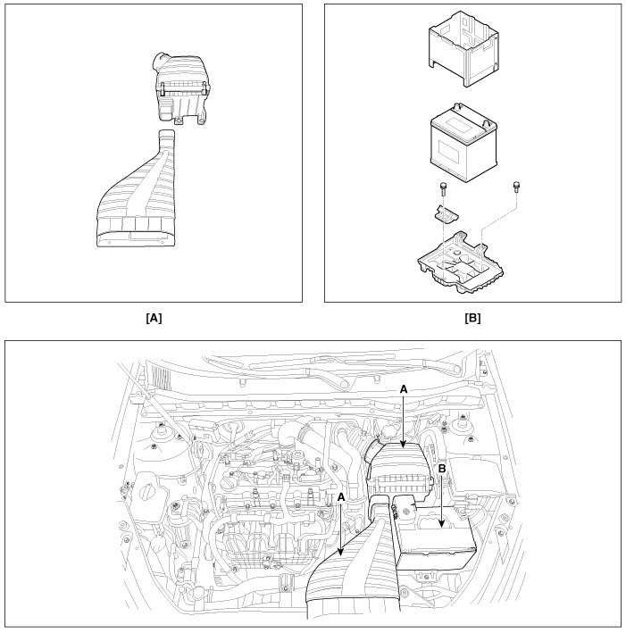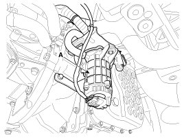 8. Remove the automatic transaxle upper mounting bolt (A-2ea) and the starter motor mounting bolt (B-2ea).