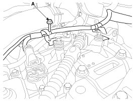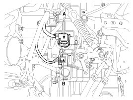 6. Disconnect the hose (B) after removing the automatic transaxle fluid cooler hose clamp (A).