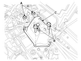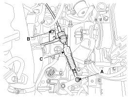 4. Remove the control cable (C) after removing the nut (A) and the bolt (B).