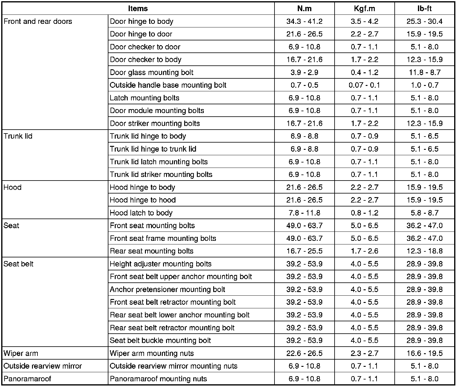 Tightening Torque