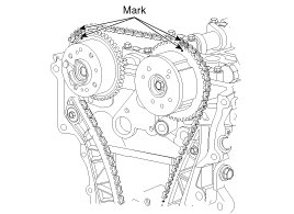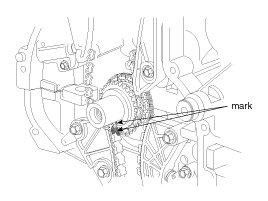 5. Install the timing chain. To install the timing chain with no slack between each shaft (cam, crank), follow the below procedure.