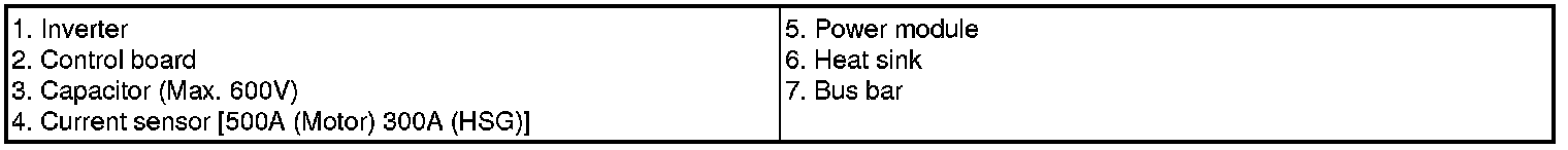 The inverter supplies high voltage electric power to 2 major motors (traction motor, HSG). Depending on the driving conditions, the inverter communicates with the previously mentioned control devices (such as the HCU) and optimizes the 2 motors according to the driving conditions. Depending on the driving conditions, the traction motor and the HSG motor may take on the role of an alternator. In such case, the inverter takes on the role of a converter. The definition, concept and in-depth description of the inverter and the converter are detailed in another section.