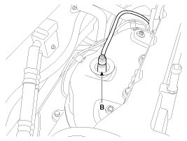 2. Disconnect the connector (A), and then remove the sensor (B).