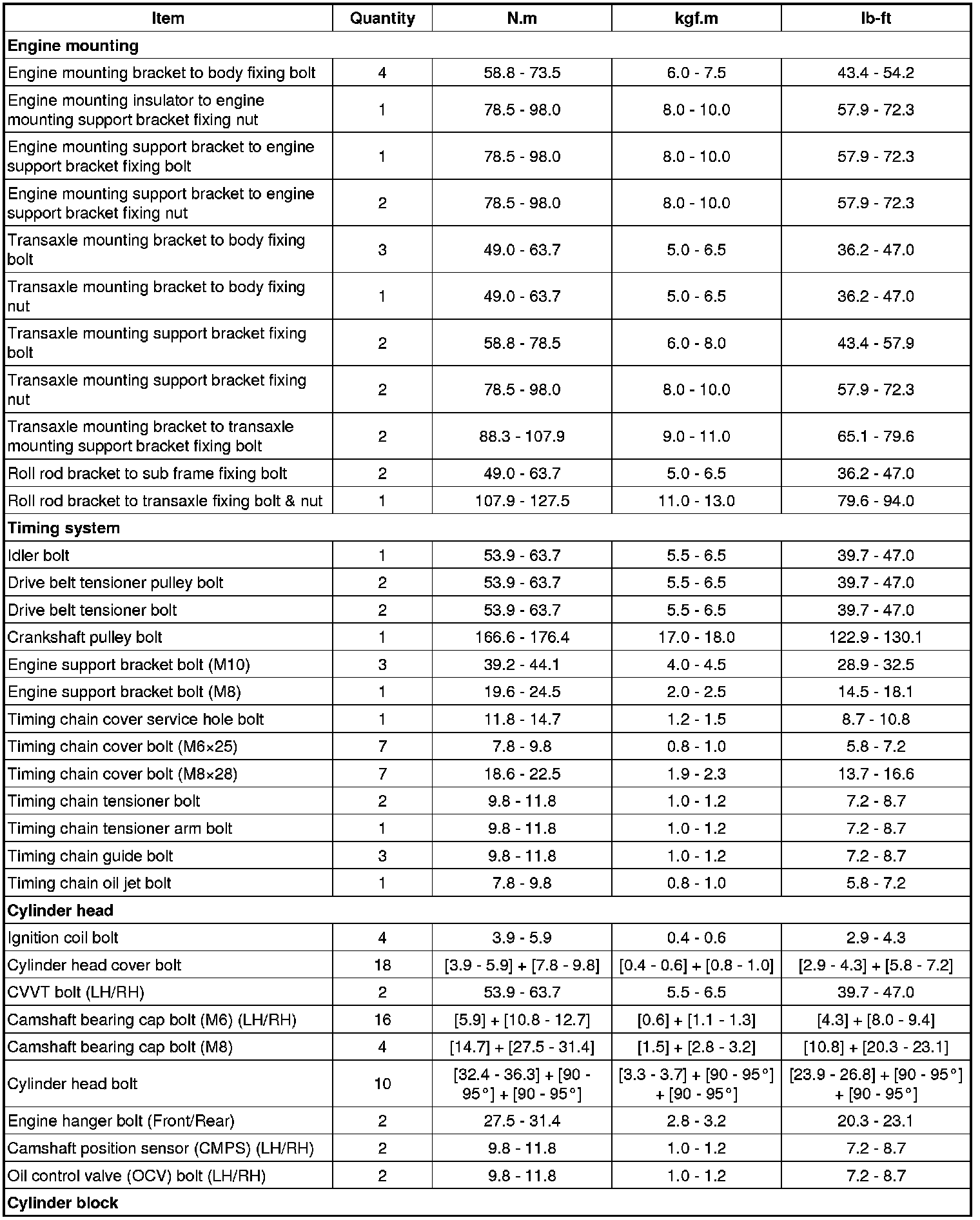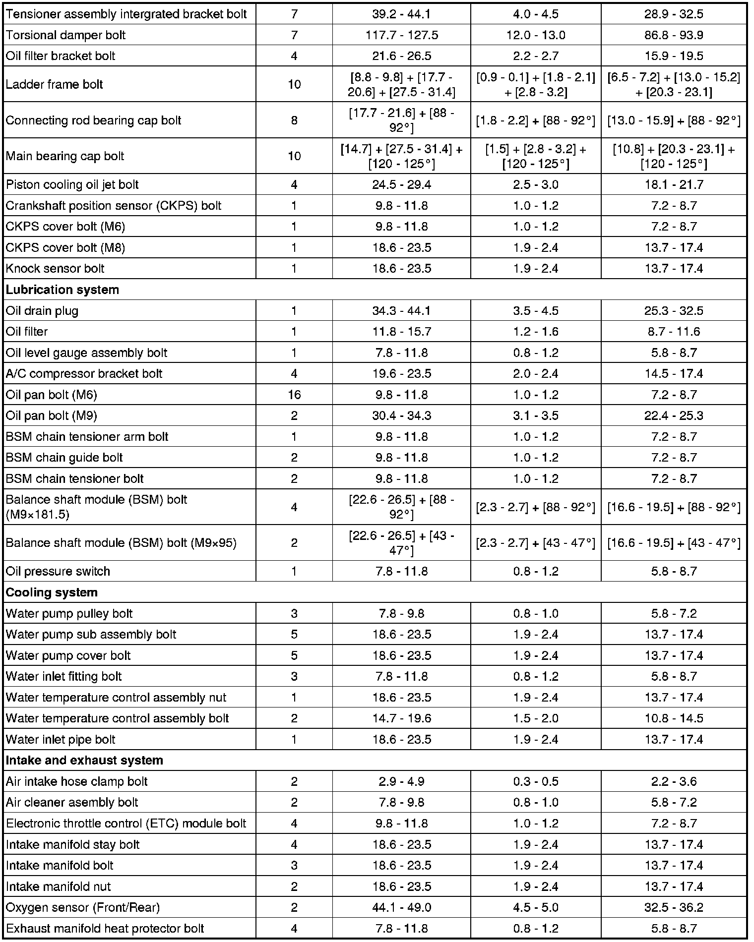 Tightening Torques