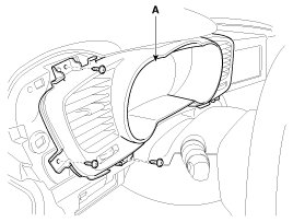 7. Remove the instrument cluster fascia panel (A) after loosening the screws.