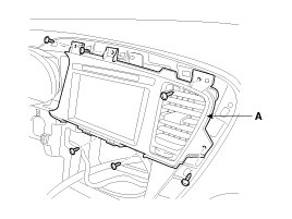 11. Remove the AVN head unit assembly (A) after loosening the mounting screws.
