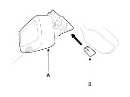 2. Disconnect the mirror connector (B) and remove the mounting screw (A).