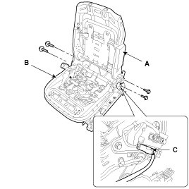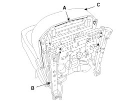 5. Push the protector(A), and then seat cushion cover (C) from the frame(B).