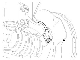 2. Remove the front wheel speed sensor mounting bolt (A).