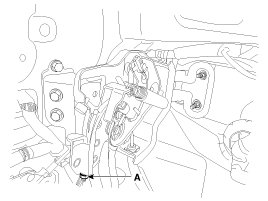 2. Adjust the adjusting nut(A) for parking brake pedal stoke 4 - 5 notches when operating effort is 196N(20kgf, 44lbf)