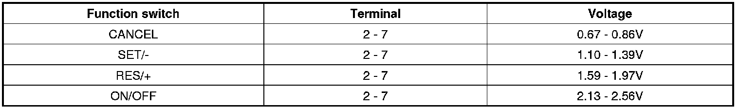 4. If resistance is OK but, measuring voltage is not within specification, inspect the wiring harness and connectors between the switch and the instrument cluster.