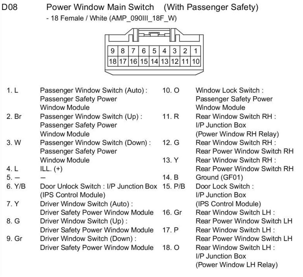 D08 Power Window Main Switch (With Passenger Safety):