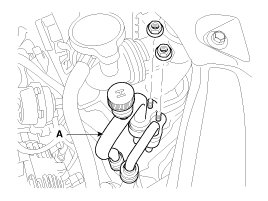 4. Disconnect the mounting clip, and then remove the air duct hose assembly (A).