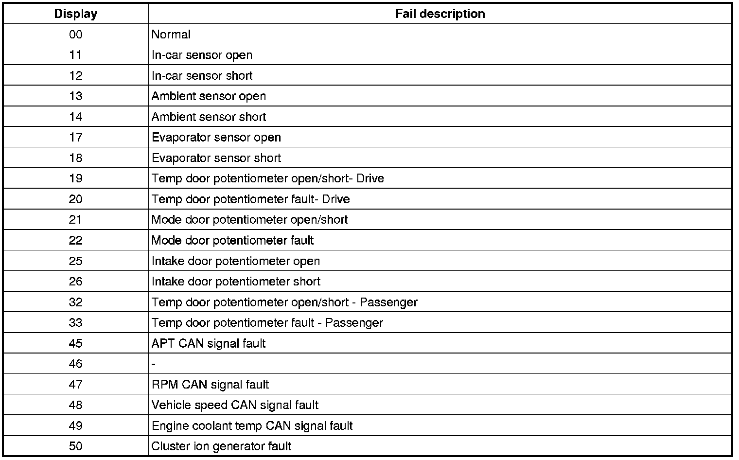 After the display panel flickers three times every 0.5 second, the corresponding fault code flickers on the setup temperature display panel every 0.5 second and will show two figures. Codes are displayed in numerical format