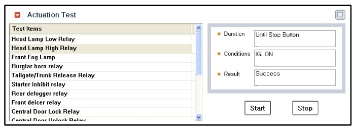 4. To perform functional test on SJB outputs, select "Actuation Test"
