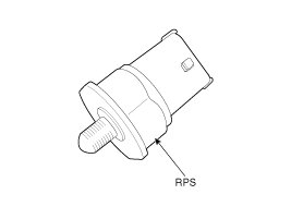 Rail Pressure Sensor (RPS) is installed on the delivery pipe and measures the instantaneous fuel pressure in the delivery pipe. The sensing element (Semiconductor element) built in the sensor converts the pressure to voltage signal. By using this signal, the ECM can control correct injection amount and timing and adjusts the fuel pressure with the fuel pressure regulator valve if the target pressure and the actual pressure calculated by the RPS output signal are different.