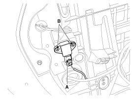 3. Disconnect the pressure side impact sensor connector (A) and remove the pressure side impact sensor mounting screws (B).