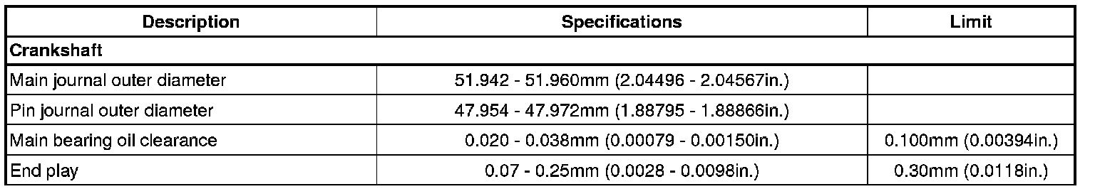 Crankshaft Bearing Specifications