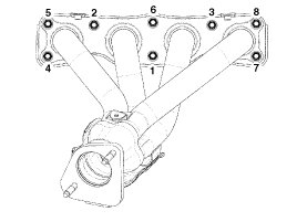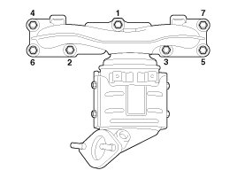 When installing the exhaust manifold, tighten the nuts with pre-torque first, and then tighten the nuts with specified torque in the sequence shown.