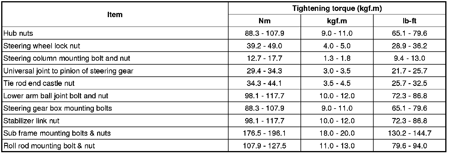 Tightening Torques
