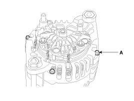1. Remove the alternator cover (A) using a screw driver after loosening the nuts (B).
