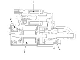 The contacts close and the starter motor cranks. In order to prevent damage caused by excessive rotation of the starter armature when the engine starts, the clutch pinion gear overruns.