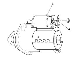 1. Disconnect the M-terminal (A) on the magnet switch assembly (B).